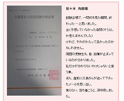 実際に介護福祉士らくらく合格勉強法で資格学習に取り組んだ人たちの体験談が紹介されています。